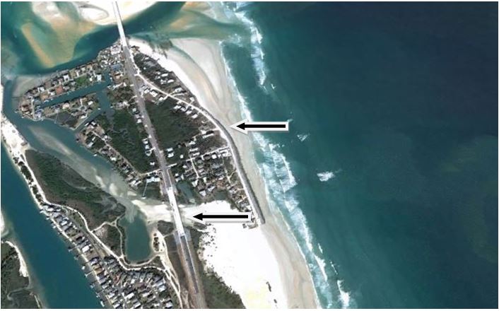 As Horowitz describes in her study, St. Augustine is no stranger to coastal adaptation. As early as 1599, the Spanish recognized the need for protection after a severe ocean storm damaged the early settlement. St. Augustine’s first seawall was constructed of timber between 1596 and 1602. Two coquina stone seawalls followed: Spain financed the first seawall completed in 1705 while the U.S. engineered the second between 1836 and 1842. (Fig. 1) The National Park Service constructed a rip-rap living seawall in 2011 to protect the nineteenth century historic seawall adjacent to the Castillo de San Marcos. (Fig. 2) In addition, the new Avenida Menendez seawall rehabilitates and protects the historic seawall between St. Francis Street to the Santa Marina Restaurant.